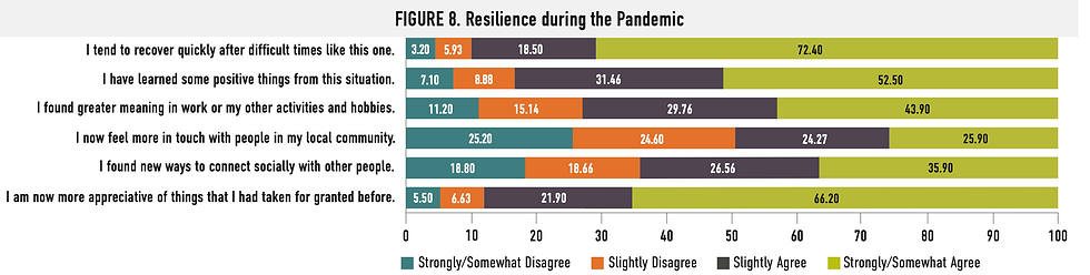 RESIDENT RESILIENCE Resilience is defined as an individual’s ability to cope with adversity, stress, and risk associated with stressful experiences (Bonanno, 2004) . It serves to protect a person from stressful experiences, promote recovery from complications the experiences have caused, and consequentially encourage personal development (Fontes & Neri, 2019) . Lower resilience is associated with worse mental health outcomes, including depression and anxiety (García-Fernández et al ., 2020) . Exhibiting concerns about COVID-19 increases the likelihood of developing these characteristics (Killgore et al ., 2020) .